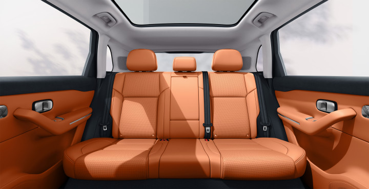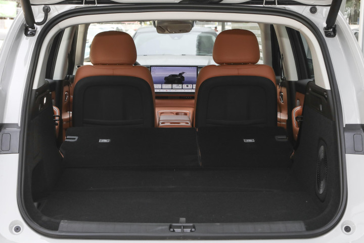 后排空间更是可圈可点。同样身高的朋友坐在后排时,腿部空间余量达到两拳两指,膝盖完全不会触碰到前排座椅靠背,头部也有一拳两指的活动余地。相较于之前试驾过的宋L DM车型,零跑C10的后排空间还要宽敞约2厘米,虽然差距看似不大,但实际乘坐感受却有明显的改善。此外,后排坐垫长度达到514毫米,能够很好地承托大腿部位,家中长辈长时间乘坐也不会感到大腿悬空不适。后排座椅支持两档靠背角度调节(10度和20度),当调至20度的半躺姿势时,孩子可以舒适地阅读绘本或玩耍玩具,长途旅行中也能保持较好的状态,家长也能因此更加省心省力。同时,后排座椅还支持4:6比例放倒,使得后备箱容积从370升迅速扩展至835升。我曾尝试将孩子的儿童平衡车、折叠露营车以及三个24寸行李箱一同放入后备箱,结果仍有富余空间,足以满足家庭出游的各种装载需求。前排副驾驶座椅具备“一键躺平”功能,至大可放倒至170度,搭配全景天幕使用,无论是白天沐浴阳光还是夜晚仰望星空,都能带来极致惬意的体验。特别是在长途自驾过程中,副驾乘客可以通过此功能缓解疲劳,享受舒适的休息时光。